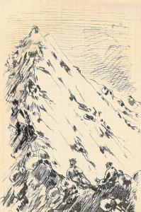- NOTIZIE STORICO CRITICHE Serie di disegni conservati all'interno di un taccuino da viaggio posseduto dall'artista Camillo Ghisi.\nSchizzo ad inchiostro raffigurante due alpini nell'atto di riposarsi al Pontone di Moriondo dal Bocchetto della Finestra.