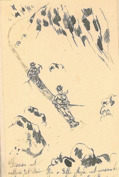 - NOTIZIE STORICO CRITICHE Serie di disegni conservati all'interno di un taccuino da viaggio posseduto dall'artista Camillo Ghisi.\nSchizzo ad inchiostro raffigurante duel figure maschili mentre attraversano il vallone del Rio Fer.