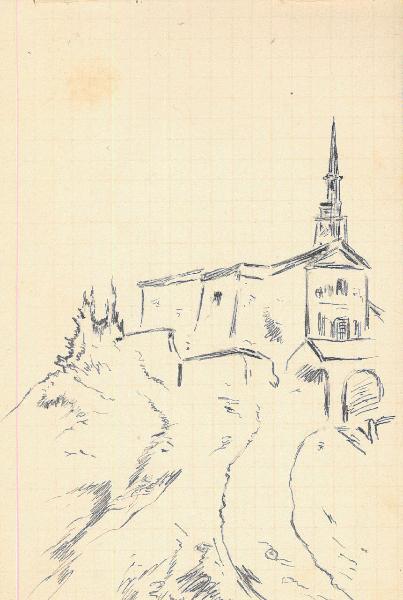 - NOTIZIE STORICO CRITICHE Serie di disegni conservati all'interno di un taccuino da viaggio posseduto dall'artista Camillo Ghisi\nSchizzo ad inchiostro raffigurante la Chiesa con il suo campanile nel comune di San Genesio in provincia di Bolzano.