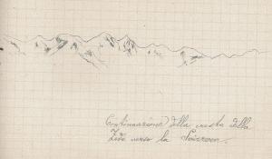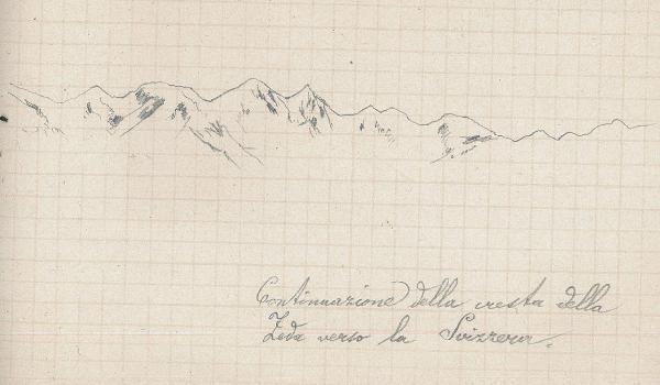 - NOTIZIE STORICO CRITICHE Serie di disegni conservati all'interno di un taccuino da viaggio posseduto dall'artista Camillo Ghisi\nSchizzo a matita raffigurante il profilo della cresta della Zeda verso la Svizzera.