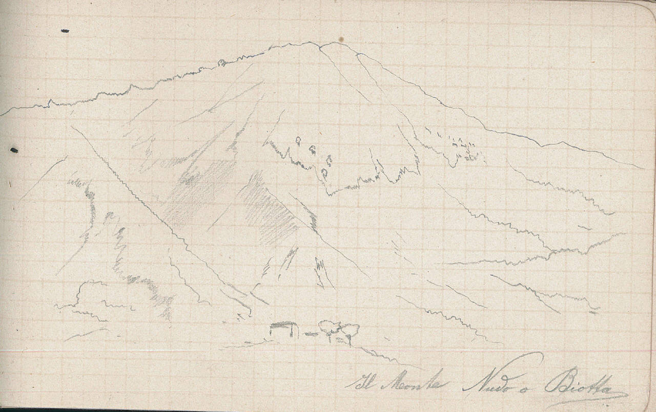- NOTIZIE STORICO CRITICHE Serie di disegni conservati all'interno di un taccuino da viaggio posseduto dall'artista Camillo Ghisi\nSchizzo a matita raffigurante il paese di Laveno con uno dei suoi Pizzoni.
