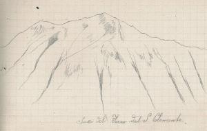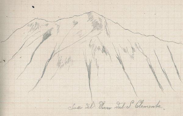 - NOTIZIE STORICO CRITICHE Serie di disegni conservati all'interno di un taccuino da viaggio posseduto dall'artista Camillo Ghisi\nSchizzo a matita raffigurante il Sasso del Ferro visto dal Santuario di San Clemente in provincia di Varese.