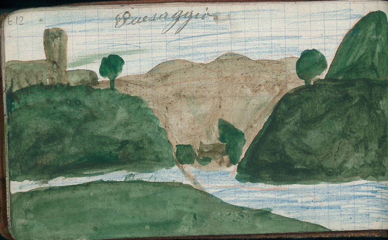 - NOTIZIE STORICO CRITICHE Serie di disegni conservati all'interno di un taccuino posseduto dall'artista Camillo Ghisi.\nScena raffigurante un paesaggio montano.