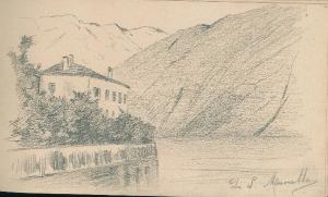 - NOTIZIE STORICO CRITICHE Serie di disegni conservati all'interno di un taccuino posseduto dall'artista Camillo Ghisi.\nIl disegno rappresenta una abitazione che si affaccia direttamente sul lago vista da S. Mamette.\nIl taccuino viene indicato nel registro di carico al n° 34305