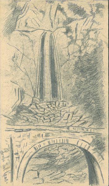 - NOTIZIE STORICO CRITICHE Serie di disegni conservati all'interno di un taccuino posseduto dall'artista Camillo Ghisi. \nIl soggetto raffigura un paesaggio montano fluviale attraversato da un ponte in muratura.\nIl taccuino viene indicato nel registro di carico al n° 34305