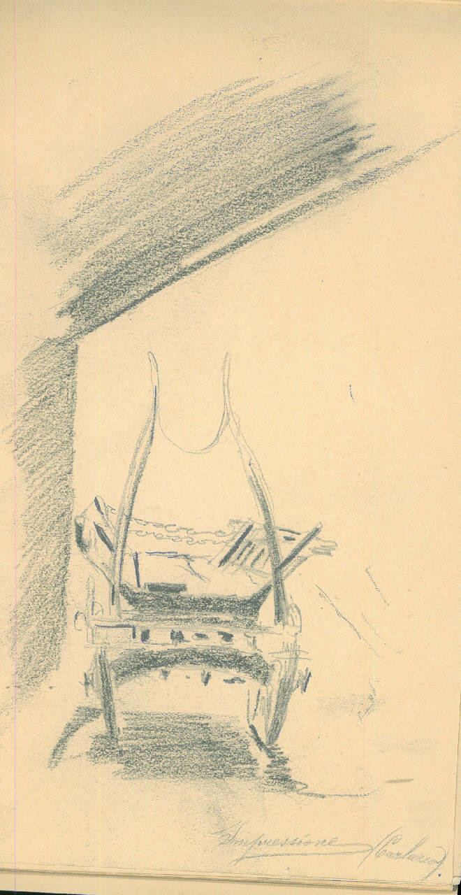 - NOTIZIE STORICO CRITICHE Serie di disegni conservati all'interno di un taccuino posseduto dall'artista Camillo Ghisi. \nIl soggetto raffigura un carretto abbozzato da Ghisi durante un soggiorno a Carlazzo.\nIl taccuino viene indicato nel registro di carico al n° 34305