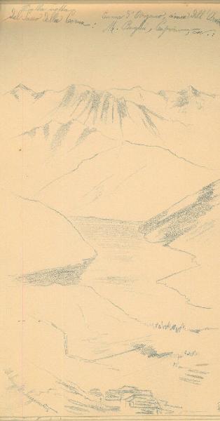 - NOTIZIE STORICO CRITICHE Serie di disegni conservati all'interno di un taccuino posseduto dall'artista Camillo Ghisi. \nIl soggetto raffigura diverse vette: vetta del Sasso della Corna, Canna d'Organo, Cima dell'Ambrione, M. Boglia, Capriano, ecc.\nIl taccuino viene indicato nel registro di carico al n° 34305