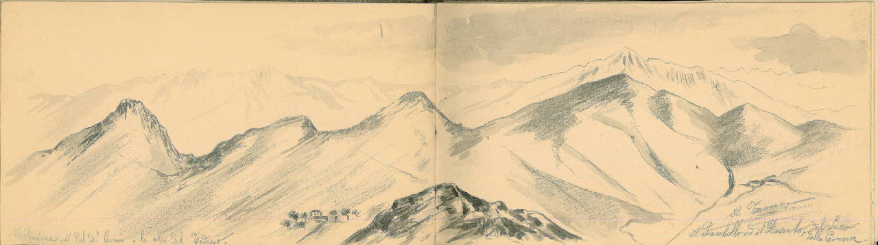 - NOTIZIE STORICO CRITICHE Serie di disegni conservati all'interno di un taccuino posseduto dall'artista Camillo Ghisi. \nIl soggetto raffigura diverse vette: il Poncione, il val de' Corni e le alpi del Tedesco. Il Tamaro, il Pianbello ed il Deserto dal Sasso della Corna.\nIl taccuino viene indicato nel registro di carico al n° 34305