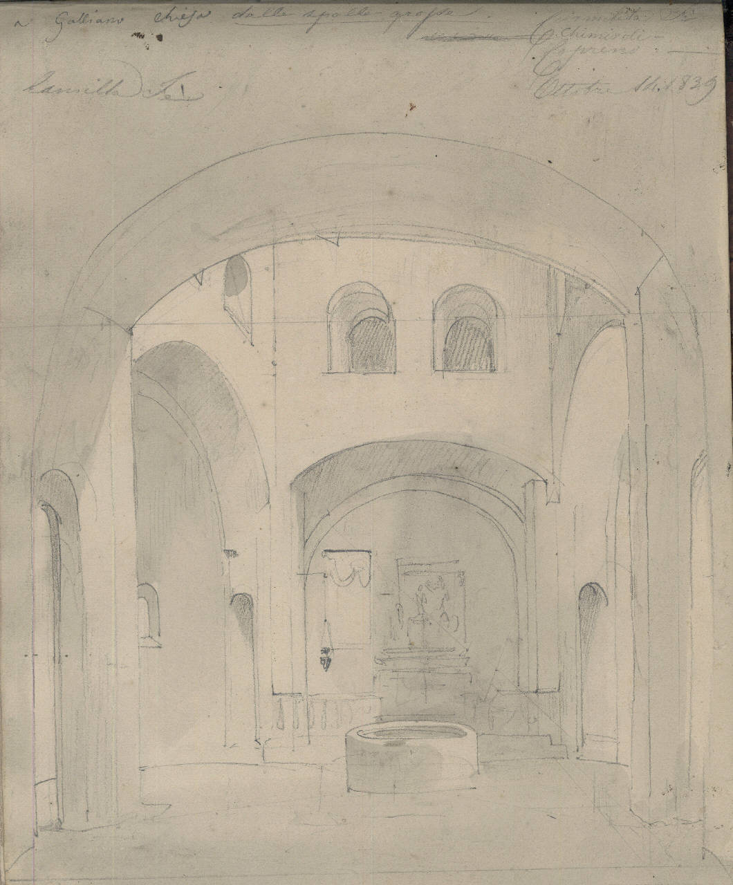 - NOTIZIE STORICO CRITICHE Parte del taccuino "Raccolta Bisi n. 448 C/ Fondo Bisi Cart. P. 8 n.3".\n La tavola riporta anche l'indicazione della data: Ottobre 14 1839.