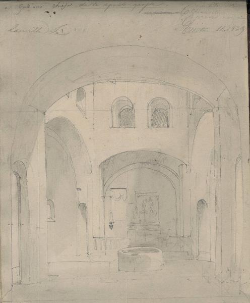 Raffigurazione di una chiesa a Galliano vista dall'interno.