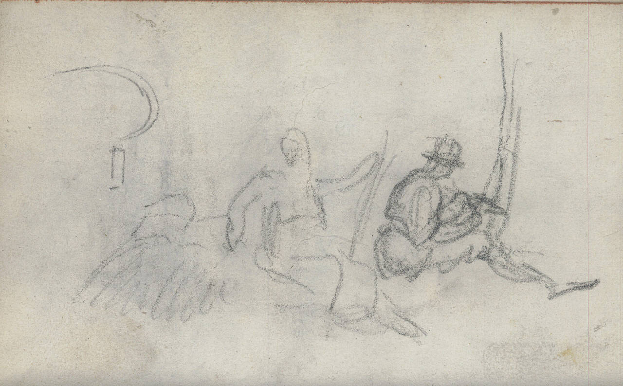 - NOTIZIE STORICO CRITICHE Disegno su due registri.\nParte del taccuino "Raccolta Bisi n. 448 L/ Fondo Bisi Cart. P. 8 n.10".