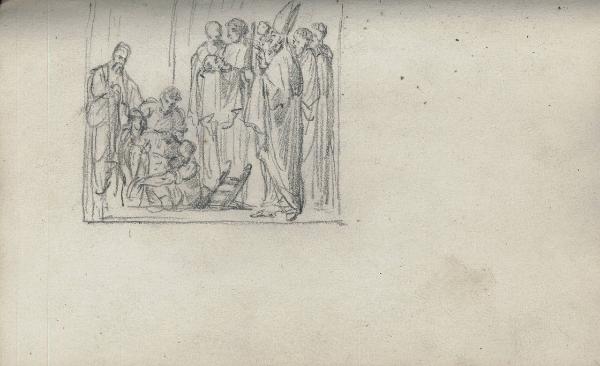 - NOTIZIE STORICO CRITICHE Disegno su due registri.\nParte del taccuino "Raccolta Bisi n. 448 L/ Fondo Bisi Cart. P. 8 n.10".