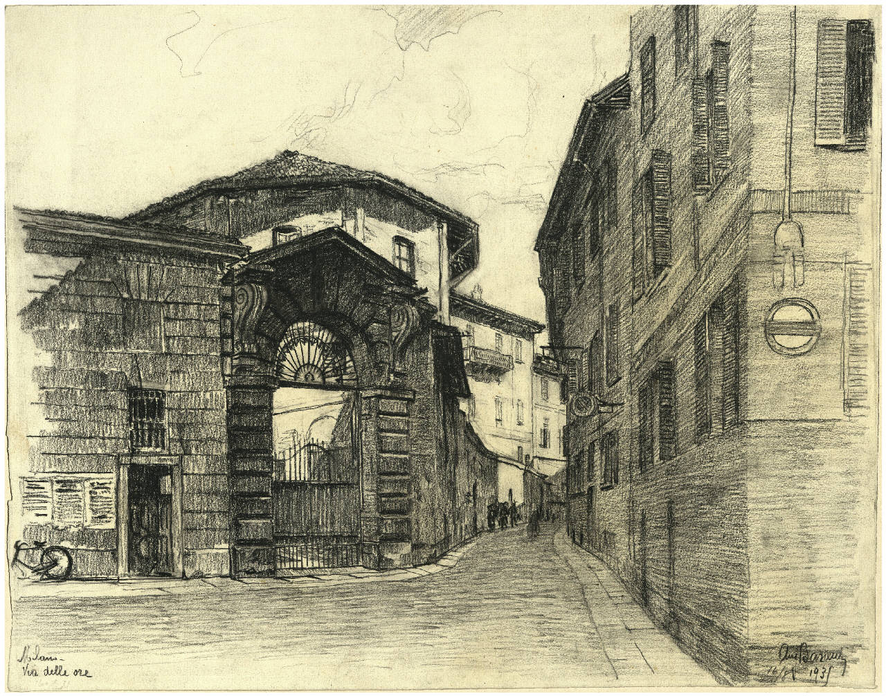 - NOTIZIE STORICO CRITICHE Il disegno raffigura lo smembramento l'angolo di via delle ore in Milano. L' opera è stata realizzata nell'agosto del 1935.