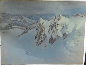 Olio su tela con paesaggio montano