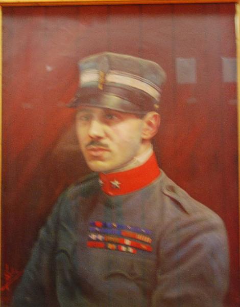 - NOTIZIE STORICO CRITICHE Il dipinto raffigura Francesco Baracca (Lugo, 9 maggio 1888 _ Nervesa della Battaglia, 19 giugno 1918). E' stato il principale asso dell'aviazione italiana e medaglia d'oro al valor militare nella prima guerra mondiale, durante la quale gli vengono attribuite trentaquattro vittorie aeree.