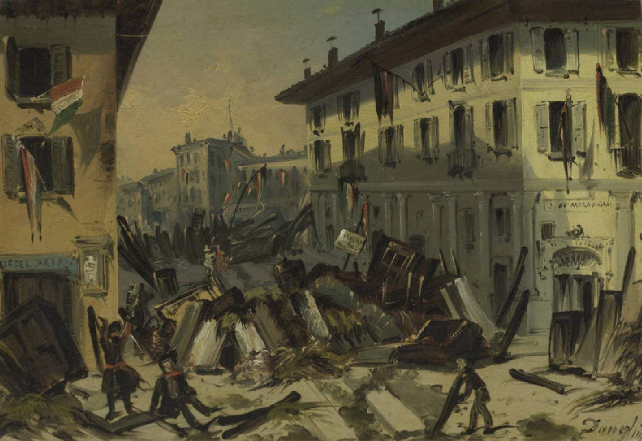 - NOTIZIE STORICO CRITICHE La tavoletta raffigura la presa di corso Vercellina da parte dei milanesi durante le Cinque giornate di Milano.
