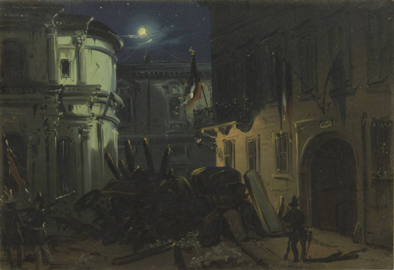 - NOTIZIE STORICO CRITICHE La tavoletta raffigura le barrcate che vennero costruite nella contrada di Brera durante le Cinque giornate di Milano.