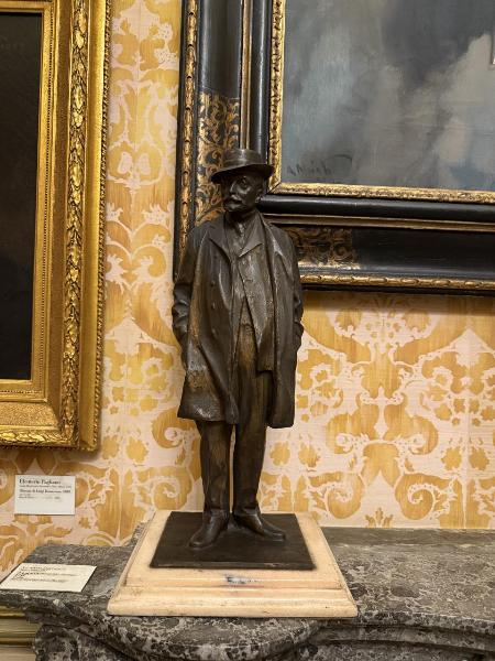 - NOTIZIE STORICO CRITICHE La piccola scultura in bronzo raffigura il quale1905 fece edificare la "Casa di riposo" e l'annessa cappella dedicata al Sacro Cuore\nlungo il viale del Cimitero nel comune di Dorno.