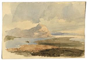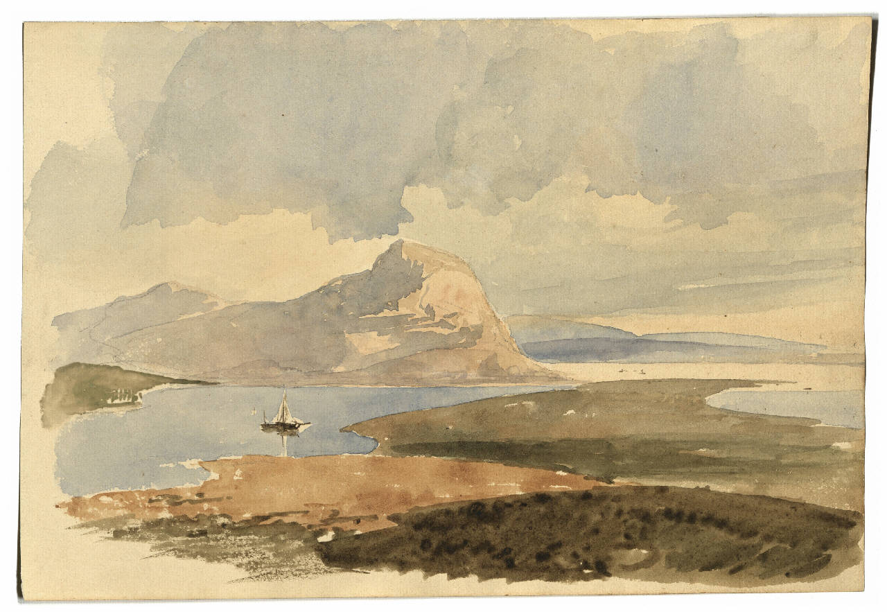 Disegno con veduta lacustre.