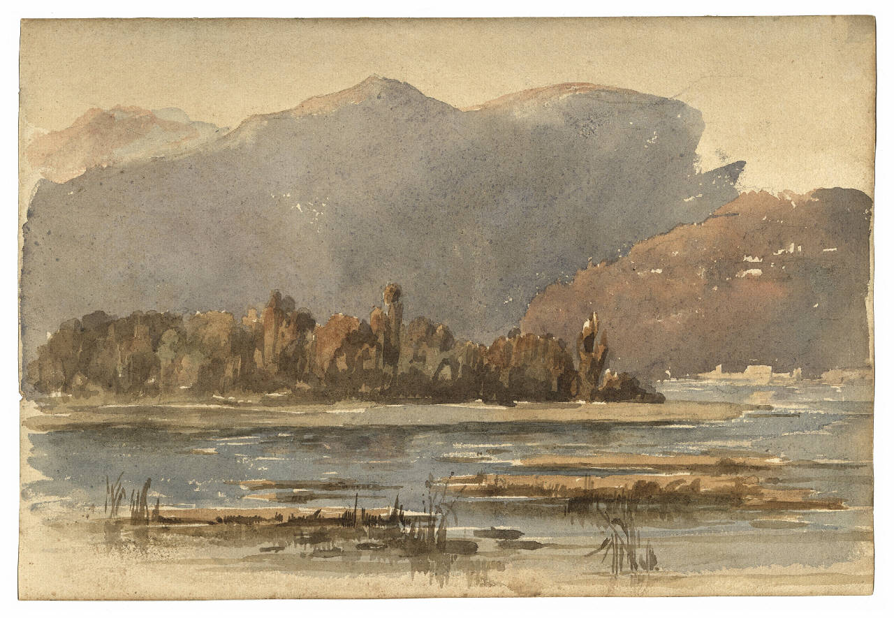 Disegno con veduta lacustre.