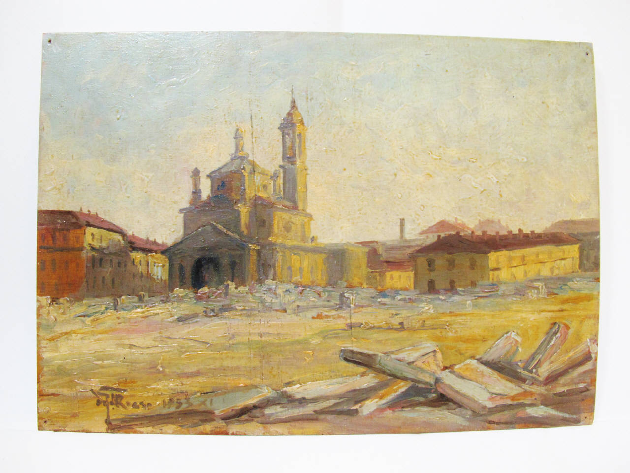 Dipinto paesaggistico la stazione nei pressi della Chiesa di san Gioacchino