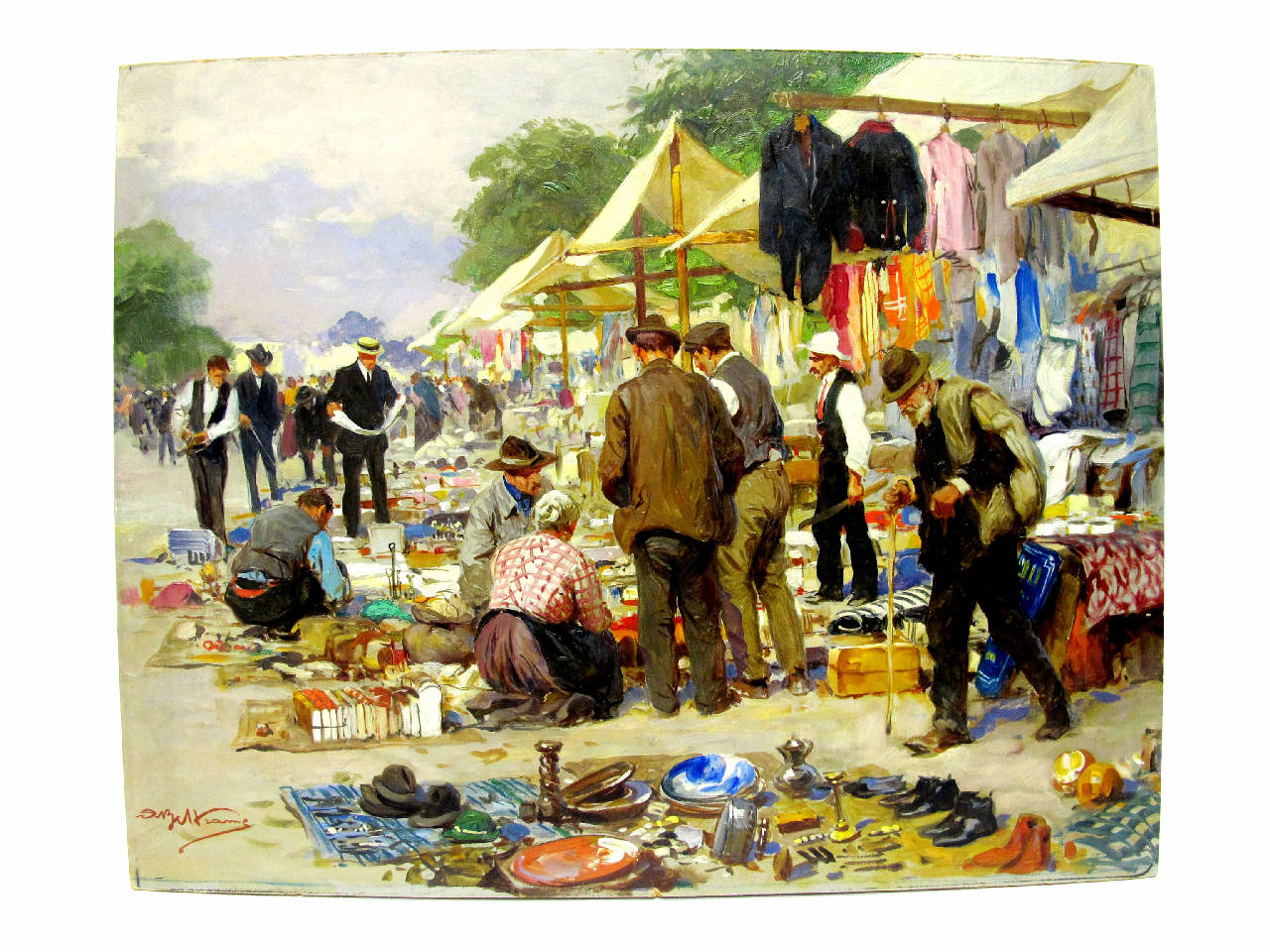 Dipinto su cartone raffigurante la famosa fiera di Senigallia a Milano