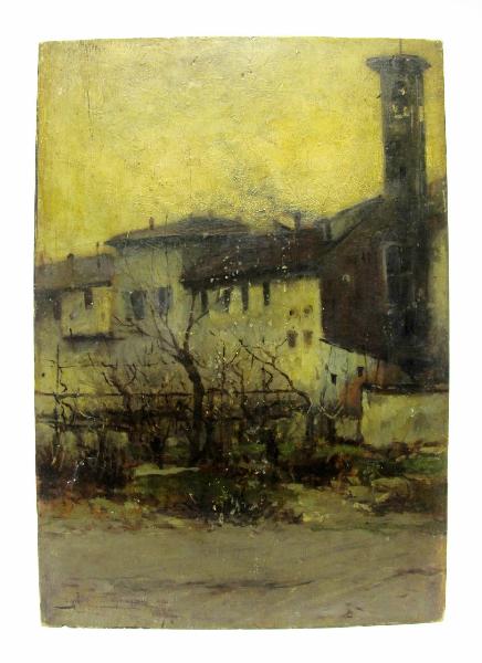 Tavola dipinta ad olio raffifurante una veduta di case da Via Conservatorio
