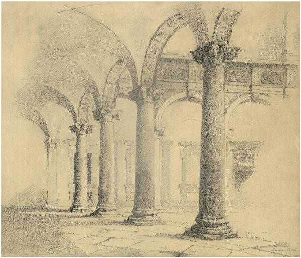 Angolo del porticato terreno del cortilone dell'Ospedale Maggiore. Angolo del porticato terreno del cortilone dell'Ospedale Maggiore