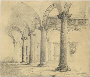Disegno raffigurante il cortile dell'Ospedale maggiore di Milano