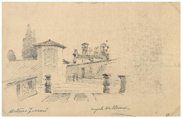 Disegno a matita raffigurante via San Barnaba a Milano\nIl disegno si trova all'interno di un album contenente una raccolta di disegni di Arturo Ferrari.