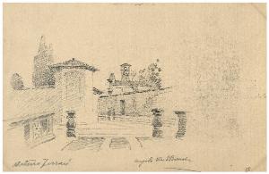 - NOTIZIE STORICO CRITICHE Lo stesso soggetto è raffigurato in un acquarello di Arturo Ferrari con NUMERO DI INVENTARIO 705\nIl disegno si trova all'interno di un album contenente una raccolta di disegni di Arturo Ferrari.