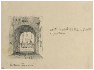 - NOTIZIE STORICO CRITICHE Lo stesso soggetto è presente in un acquarello di Arturo Ferrari recante il numero di inventario 695.\nIl disegno si trova all'interno di un album contenente una raccolta di disegni di Arturo Ferrari.
