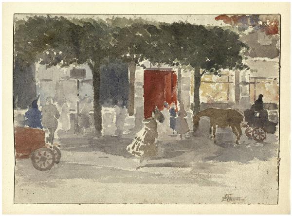 Acquarello raffigurante la taverna rossa dell'eden in tempo di guerra.