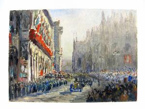 Carton telato raffigurante Piazza del Duomo il 30 Ottobre 1936 in occasione dell'entrata del Duce nella città di Milano