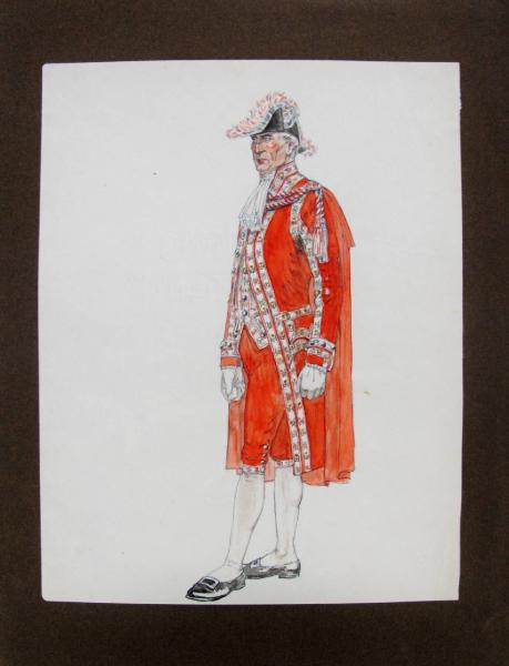 - NOTIZIE STORICO CRITICHE Il foglio è incollato su un supporto cartaceo marrone. \nSul retro è riportato il numero di Registro di carico del Museo di Milano: 745\nI disegni sono accompagnati da documentazione dattiloscritta del Podestà di Milano, anno 1933 o 1935 (la data 1933 è sostituita con nota manoscritta con il 1935), numero di Protocollo Generale 147/626.\nIl documento informa che il Comune di Milano ha disposto la rappresentazione grafica di 18 figurini con uniformi della tradizione milanese.