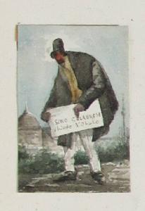 Disegno ad acquarello su carta "Tecoppa - Mendicante", 7,7x5,2 cm.