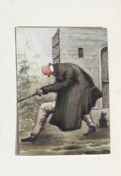 Disegno ad acquarello su carta "Esercizi mattutini del Sig. Pànera", 9x6,5 cm.