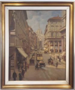L'opera raffigura Corso Vittorio Emanuele, in lontananza si scorge il Duomo di Milano.