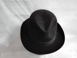 Cappello maschile (lobbia) di feltro nero con iniziali L.D.S.\nnastro in gros nero con fiocco piatto.
