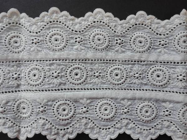 Bordo in cotone pluricentinato su entrambi i lati, con decorazione geometriche e floreali costituito dall'unione di tre fasce.