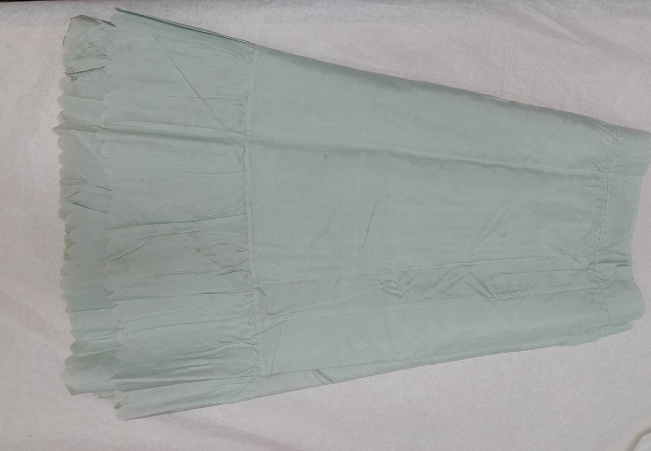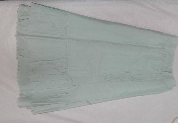 Sottogonna in taffetas di seta color acquamarina con al fondo volant smerlato a vivo; \nla balza si agganciava all'interno dell'abito tramite una serie di bottoni.