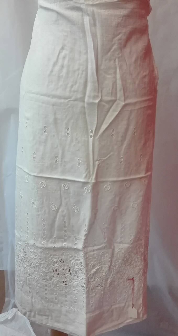 Parte inferiore di un sottabito, colore bianco. \nAl fondo ricamo a giorno con motivo floreale.