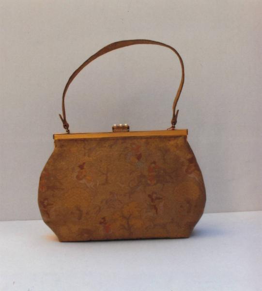 Borsetta tessuto lamé oro della Ditta Bianchini-Férier, cerniera Ditta Galloise di Parigi: guilloché dorata, saltarello con perle