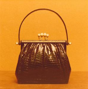 Borsetta in coccodrillo Messico, cerniera argento, avorio e marcassites, realizzata dall'orefice Signor Mariani Giulio su disegno Ditta Ajelli.