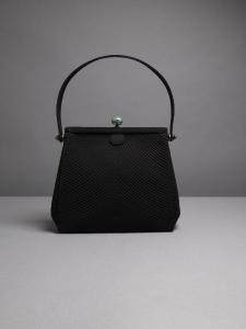 Borsetta in tessuto cordonato nero, cerniera con saltarello argento, marcassites a pietra amazzonite