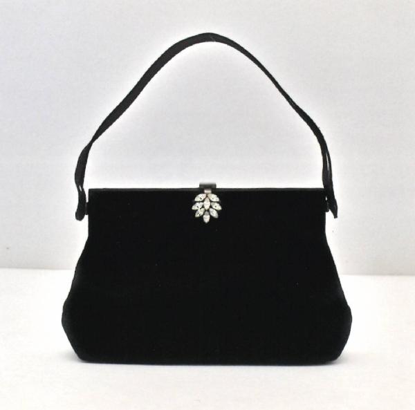Borsetta in raso nero con cerniera con saltarello similis a forma di goccia Ditta Boglino Parigi
