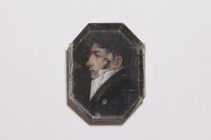 Miniatura ottagonale che ritrae il poeta Carlo Porta di profilo, vestito in camicia e giacca