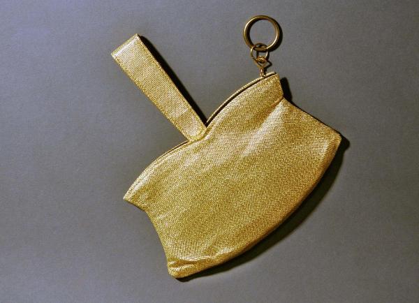 Borsa da sera di linea sagomata a tulipano in lamé oro; chiusura con zip e tirello in metallo dorato. Manico «a passante». Interno foderato in tela nera; doppio specchietto coordinato. Internamente è presente l'etichetta «BAG BY SPEYER/NEW YORK». Sulla zip compare l'iscrizione «SERVAL».