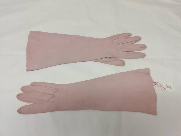 Guanti femminili di pelle scamosciata rosa, lunghi 35,5 cm.