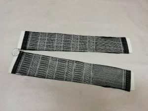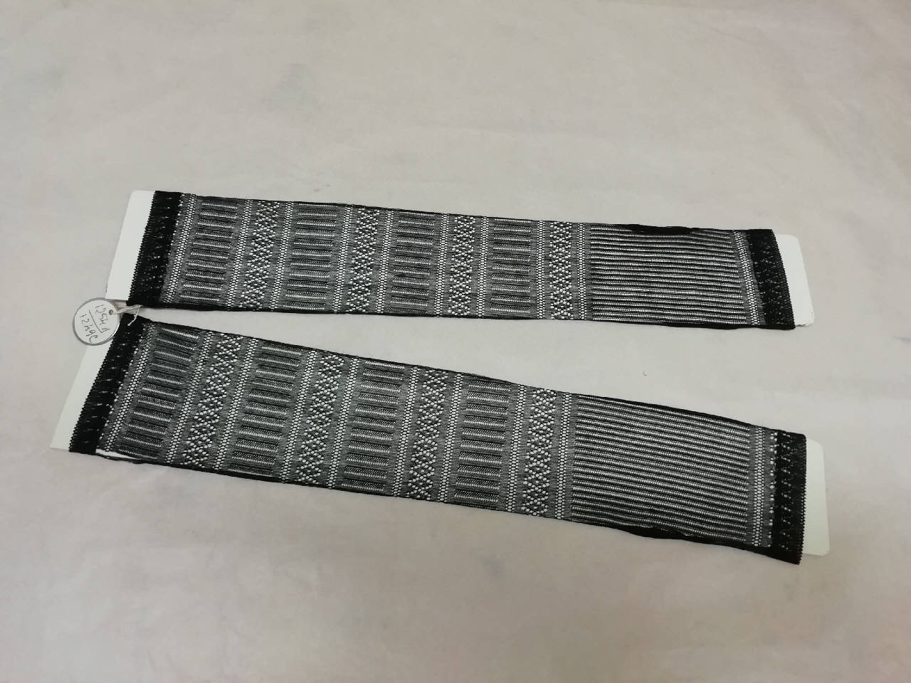 Mezzi guanti lunghi 38 cm in seta nera, motivi geometrici orizzontali.